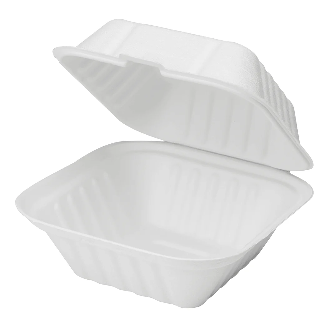 6"x6" Bagasse Hinged Container White Pfas Free Ke-bhc66-1cff Karat - 500ct