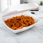 Perfect for street tacos, Buffalo chicken wraps or fresh side salads! Foam hinged lid containers are a classic option that works well for delivery and to-go orders. Saucy foods stay contained thanks to the non-absorbent foam. Avoid messes in transit with a container that securely stacks and closes. Share on-the-go meals as the separable lid becomes an extra plate. Count on this 8.5-inch foam hinged container for a reliable dining experience every time!